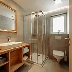 Featuring a balcony and a seating area, Appartement Wiederkehr offers modern amenities like a flat-screen TV with satellite channels, ensuring a more enjoyable stay. A bathroom has a separate toilet and a shower, as well as a hairdryer and towels.